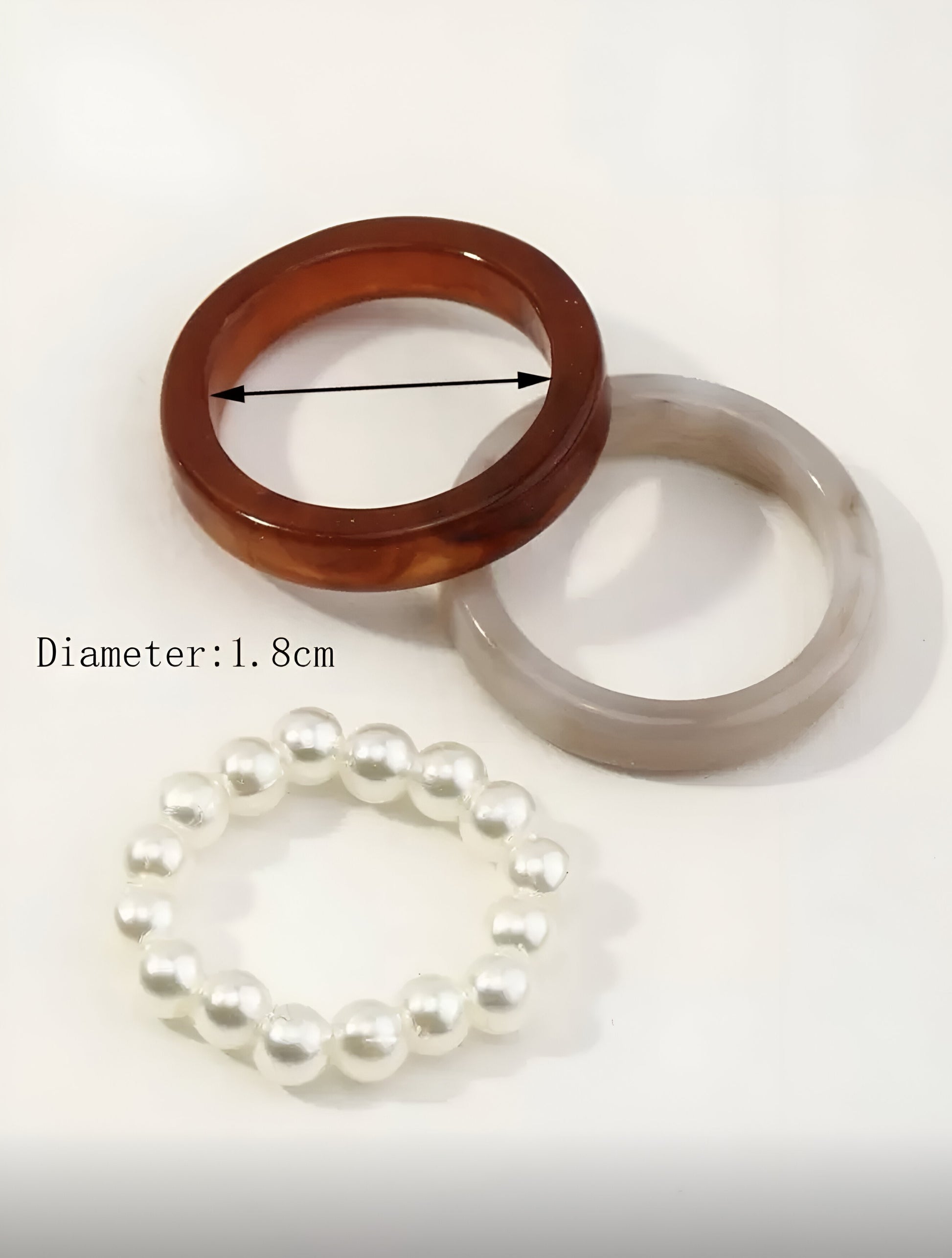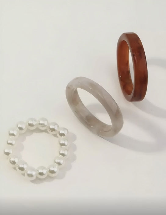 Pearl & Resin Ring Trio Set – Elegant Mixed Textures